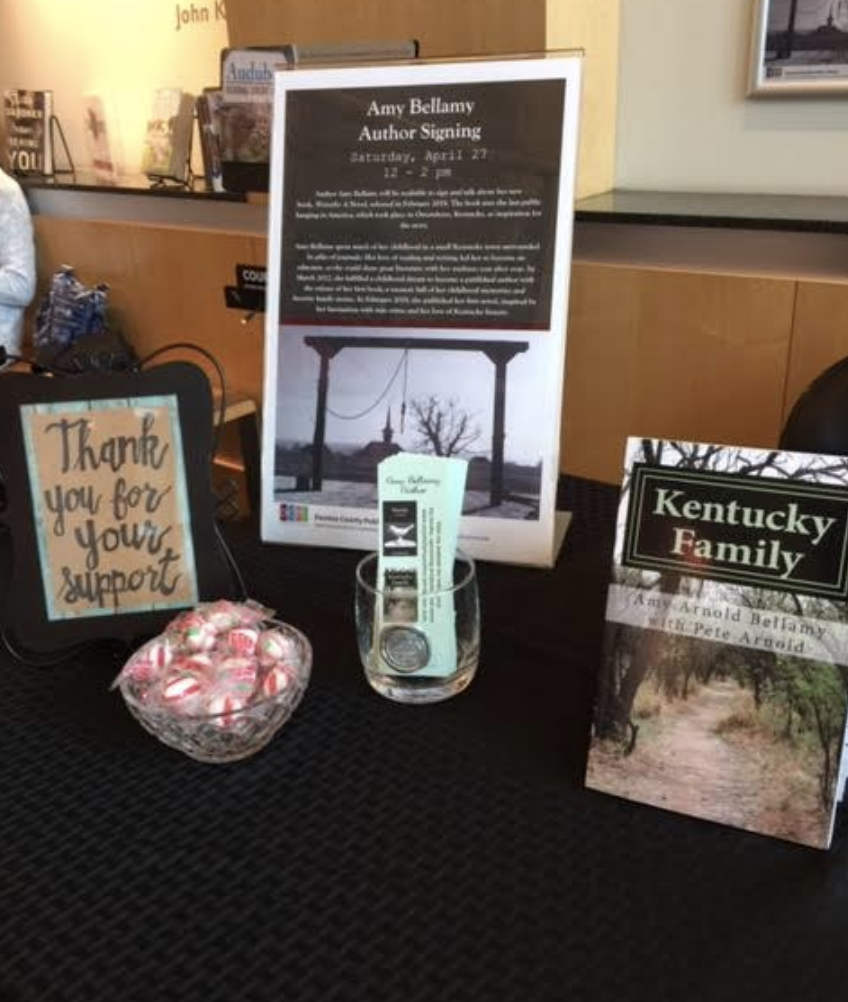 A little later, a couple approached my signing table with a briefcase. The man said, “You don’t know me, but my father was James Thompson. Florence Thompson was my grandmother.” Florence Thompson. As in, THE Florence Thompson. As in, the woman who was the sheriff in 1936 when the last public execution happened. As in, the inspiration for one of the main characters in my book.