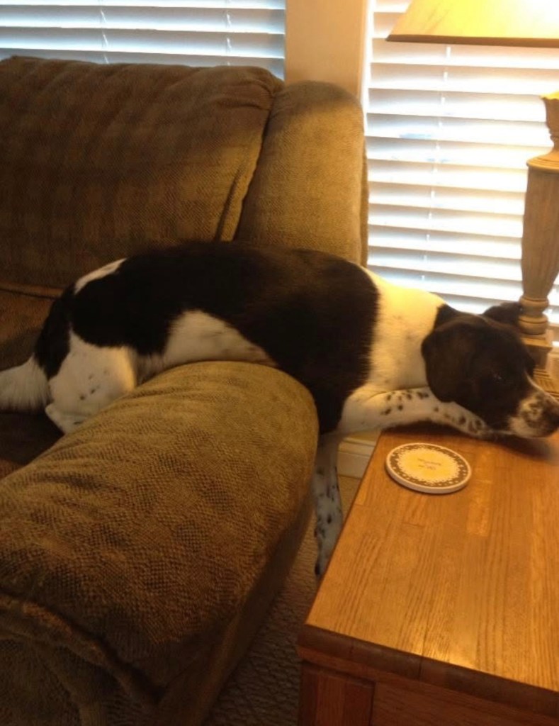It’s like you refused to sleep in a normal position or in the expensive dog beds we bought you just out of spite. I sometimes think it was a part of your humble nature. You were just a regular old hound dog, never putting on airs or thinking you deserved more. You were content with the simple things in life – chasing squirrels and rabbits in the backyard, barking at anything and everything, and falling asleep wherever you happened to land.
