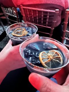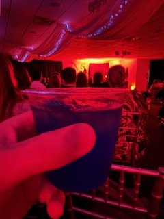 We arrived to find a line already stretched far out the venue doors, but we were quickly ushered in, greeted by our hosts, and given our first cocktail of the night, The Pale Blue Eye. We took our seats and settled in as the show began.