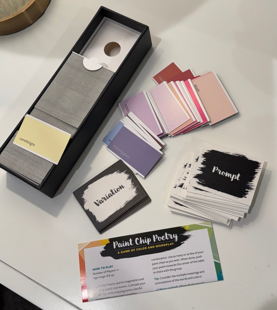 I picked up Paint Chip Poetry: A Game of Color and Wordplay by Lea Redmond on a whim at Blick Art Materials when I was in Atlanta last week. I thought it might be a fun little activity to do when I hit a wall of writer’s block or just need some inspiration.